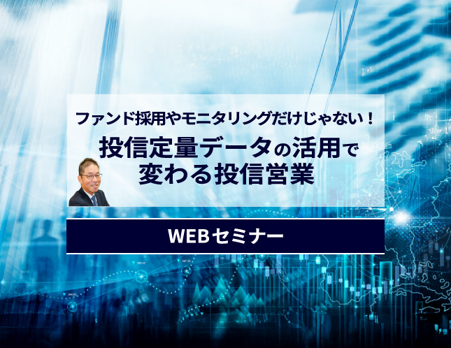 投信定量データを“ファンド採用・モニタリング”から“販売現場”へ。顧客本位の業務運営を実現する新しいアプローチ 前回までのセミナーでは、ファンド採用や定期モニタリングにおける定量データの活用方法をご紹介しました。 今回は、一歩進め、営業現場で顧客に商品を説明する際に、どのように定量データを活用すれば販売促進や顧客満足度の向上につながるのかに焦点を当てます。